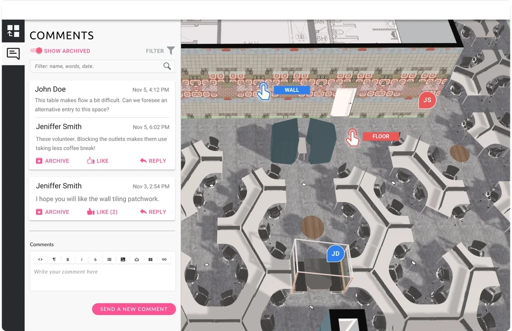 Space Designer Business améliore les présentations de produits grâce à des capacités de visualisation avancées, permettant des configurations détaillées des projets pour répondre aux besoins spécifiques des clients. Ces fonctionnalités de pointe non seulement améliorent l'attrait visuel de vos offres, mais aident également les clients à mieux comprendre les espaces et produits, ce qui conduit à des taux de conversion des ventes plus élevés et à une satisfaction client accrue.